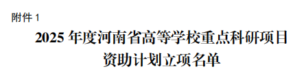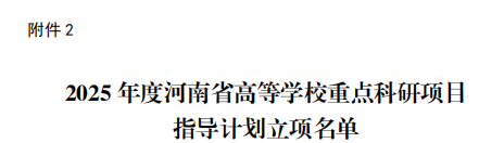 近日,河南省教育厅下发《关于公布 2025 年度河南省高等学校重点科研项目计划立项的通知》(教科技〔2024〕315 号),bw必威西汉姆联官网申报的3个项目顺利立项。