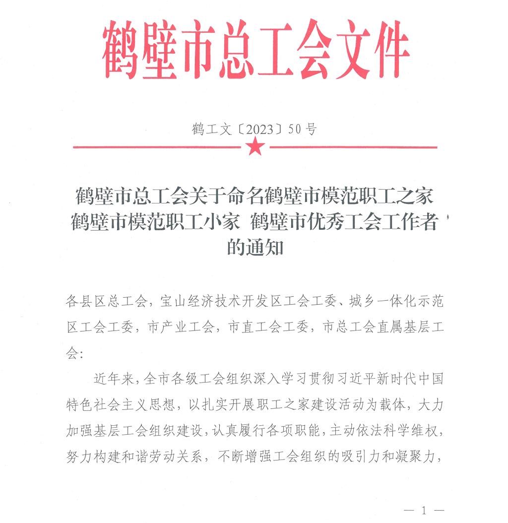 近日,鹤壁市总工会印发了《鹤壁市总工会关于命名鹤壁市模范职工之家 鹤壁市模范职工小家 鹤壁市优秀工会工作者的通知》,bw必威西汉姆联官网分工会成功入选“鹤壁市模范职工小家”。