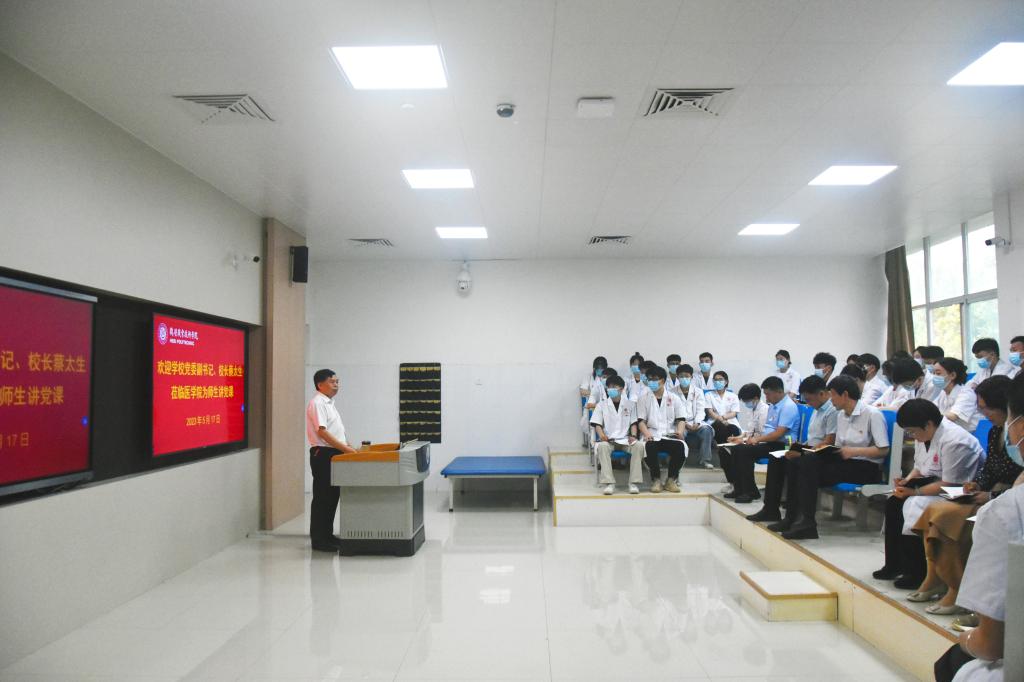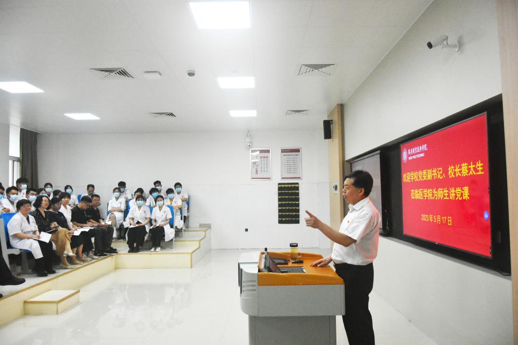 蔡董事长从三个方面为与会师生讲授了一堂生动的党课。