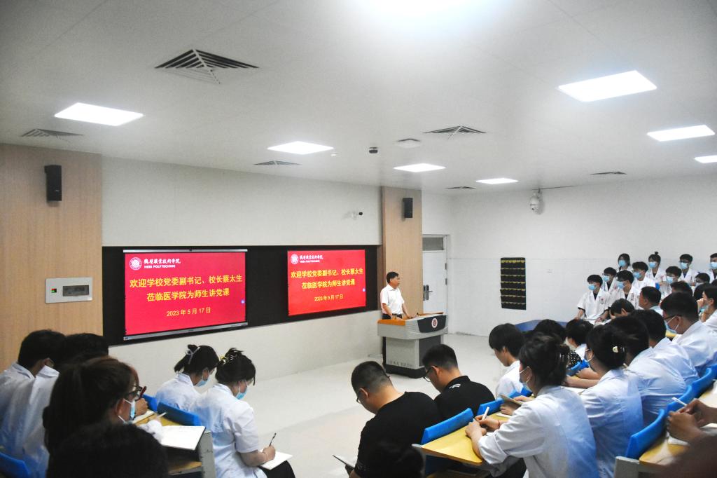 5月17日下午,公司党委副书记、董事长蔡太生莅临bw必威西汉姆联官网为师生讲党课。公司党政领导班子,教师、辅导员和入党积极分子代表等60余人参加。