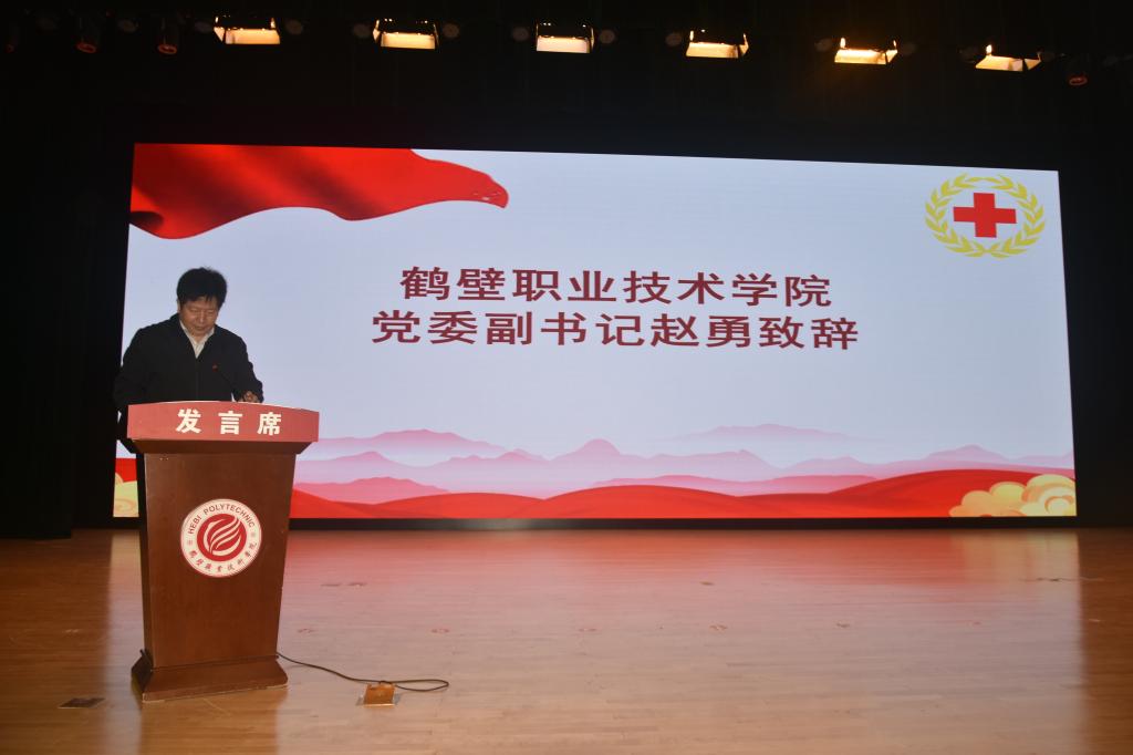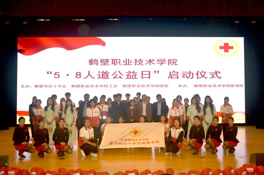 为弘扬中华民族乐善好施、行善积德的美好传统文化,传递社会正能量。2023年5月7日bw必威西汉姆联官网红十字志愿服务队联合学校工会、团委在诚信礼堂隆重举行“5.8人道公益日”启动仪式。鹤壁市红十字会党组书记、常务副会长张红霞、鹤壁职业技术公司党委副书记赵勇、工会副主席李宏伟、团委副书记(人文教育公司党总支书记)高忠波出席启动仪式,参加本次会议的还有各二级部门、二级学院分工会主席、团总支书记,员工志愿者代表,新闻媒体、记者朋友等,仪式由公司党总支书记赵成志主持。