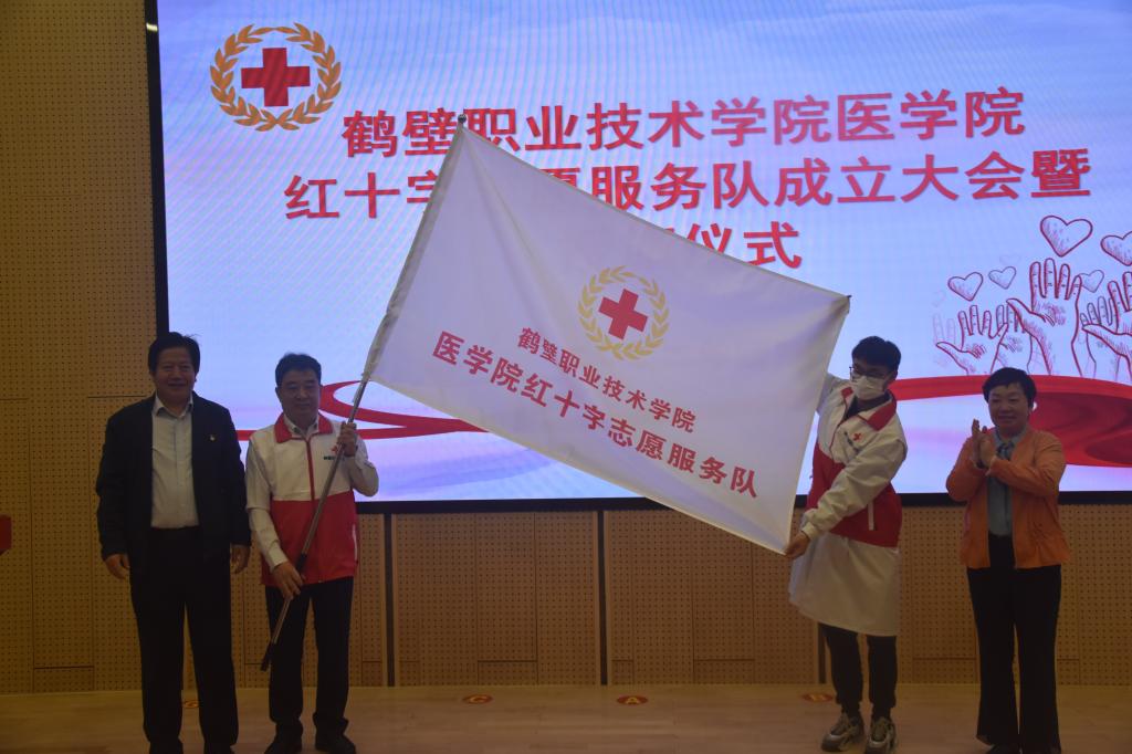 4月26日上午,我市首支高校红十字会志愿服务组织——bw必威西汉姆联官网红十字志愿务队成立大会暨授旗仪式在学校1号报告厅成功召开。