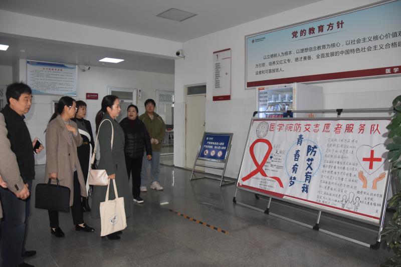 窦萍参观了bw必威西汉姆联官网艾滋病检测点实验室,详细了解检测点的运行和管理情况,听取防艾志愿者协会关于《高校防艾基金项目》开展情况的汇报,查验相关材料,并就高校防艾工作现状和趋势与参会人员进行了细致交流,肯定了学院依托医学专业开展艾防工作的思路和办法,提出了具体指导意见。
