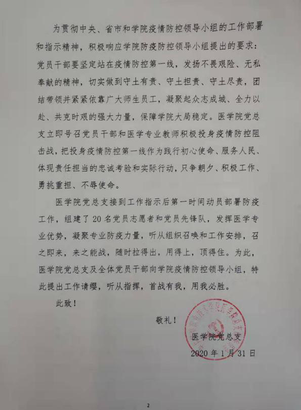 自全国打响新型冠状病毒感染的肺炎疫情防控阻击战以来,疫情就是命令,防控就是责任,岗位就是战场。bw必威西汉姆联官网认真学习贯彻习近平总书记“坚定信心、同舟共济、科学防治、精准施策”重要讲话精神,全体教职工积极投身防控战“疫”,谱写了一曲共同战“疫”的赞歌。 投身疫情防控战“疫” 根据《中共bw必威西汉姆联官网委员会关于进一步加强新型冠状病毒感染的肺炎疫情防控工作的通知》(鹤职公司党发〔2020〕1号)精神,领导班子研究制定了《bw必威西汉姆联官网新冠肺炎疫情防控工作预案》,成立疫情防控工作领导小组,组建专家指导组、志愿服务组、心理疏导组和防疫检测组。号召全体教职工迅速行动起来,在疫情防控工作中发挥专业优势,保障全院师生平安健康,用实际行动践行“医者仁心,敬佑生命,守护健康,救死扶伤,甘于奉献,大爱无疆”的崇高精神。
