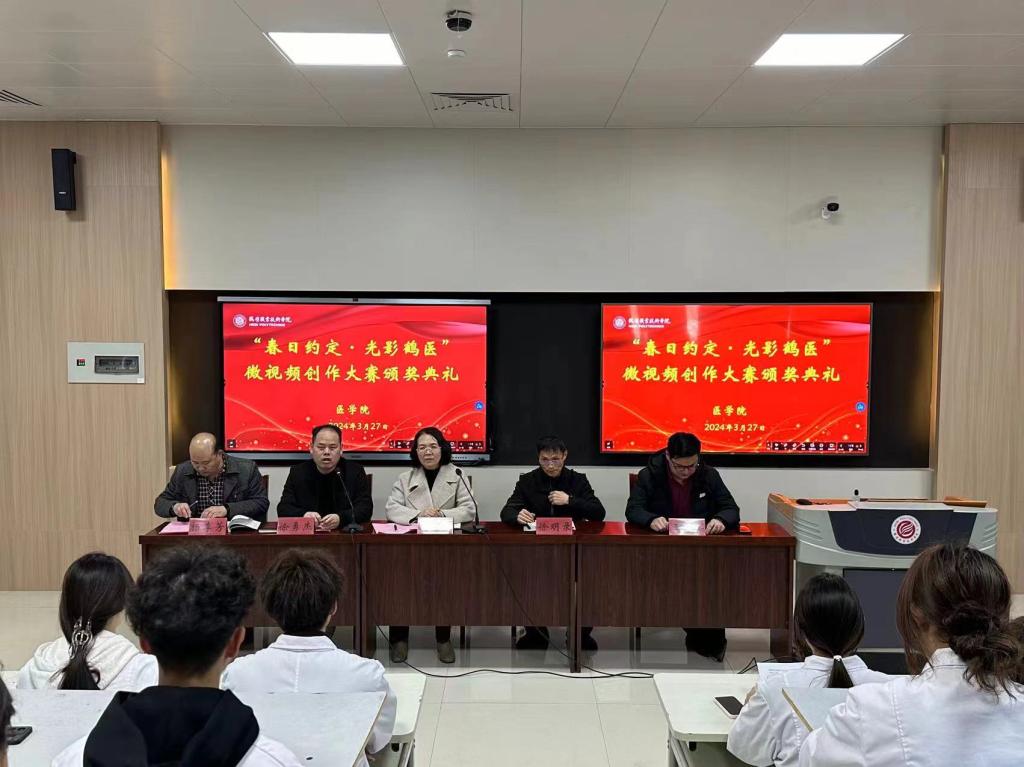 2024年3月27日,bw必威西汉姆联官网在诚信3号楼316教室举行“春日约定·光影鹤医”微视频大赛颁奖典礼,副经理刘海燕、徐明录、辅导员及部分获奖员工代表参加。会议由党政办主任徐勇杰主持。