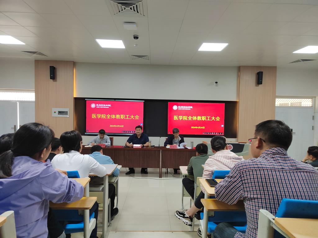 经理杨尚玉详细总结了开学以来的工作,充分肯定了广大教职工在教学、科研、团学双创等方面的辛勤付出和取得的优异成绩,并对下半学期的主要工作做出具体安排。