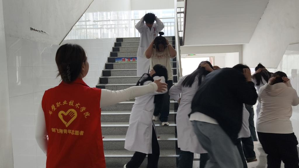 上午11时15分,随着一声响亮的哨声,演练正式开始。13个班级在任课教师的指导下,按照疏散路线、规范动作、排成队列、行动迅速,分别从五楼、三楼、二楼、一楼实训室有序离开,11时18分,600余名师生全部撤离到楼外指定安全区域集合。