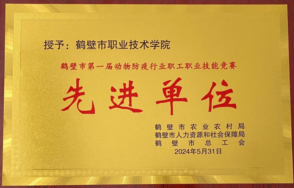 日前,鹤壁市第一届动物防疫行业职工技能竞赛成功举办。受比赛主办方委托,公司bw必威西汉姆联官网畜牧兽医专业选派8名裁判员和8名志愿者全程参与竞赛评分与服务工作,得到了主办方的高度认可。公司被鹤壁市农业农村局、鹤壁市人力资源和社会保障局、鹤壁市总工会联合授予先进单位称号。