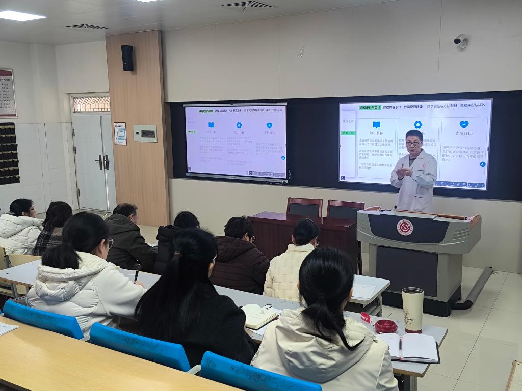 活动中,7个教研室的课程负责人代表依次围绕课程定位与目标、课程内容设计、教学资源建设、教学实施与方法创新、课程评价与成效等核心内容展开阐述,清晰展现各课程建设思路与实践成果。汇报结束后,各教研室主任立足专业发展趋势、教学实际需求及评审标准,对汇报内容进行逐一点评,在肯定亮点的同时精准指出不足,并从课程体系优化、教学资源开发、教学实施过程等方面提出针对性优化建议,现场交流氛围浓厚。
