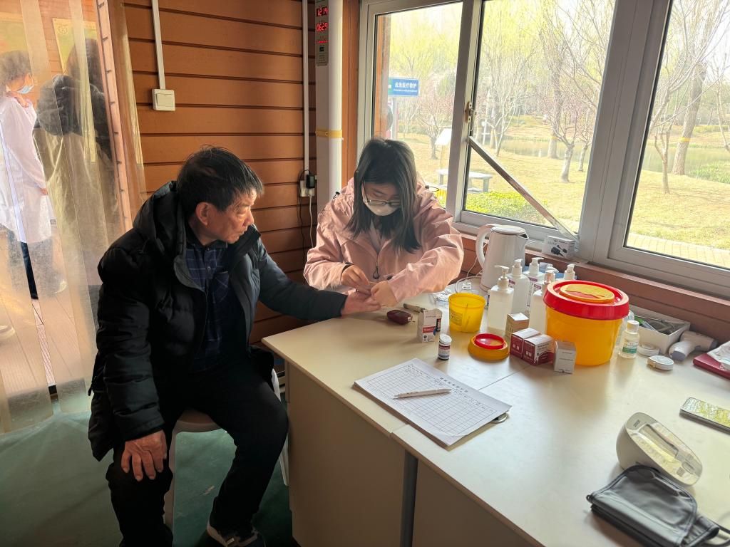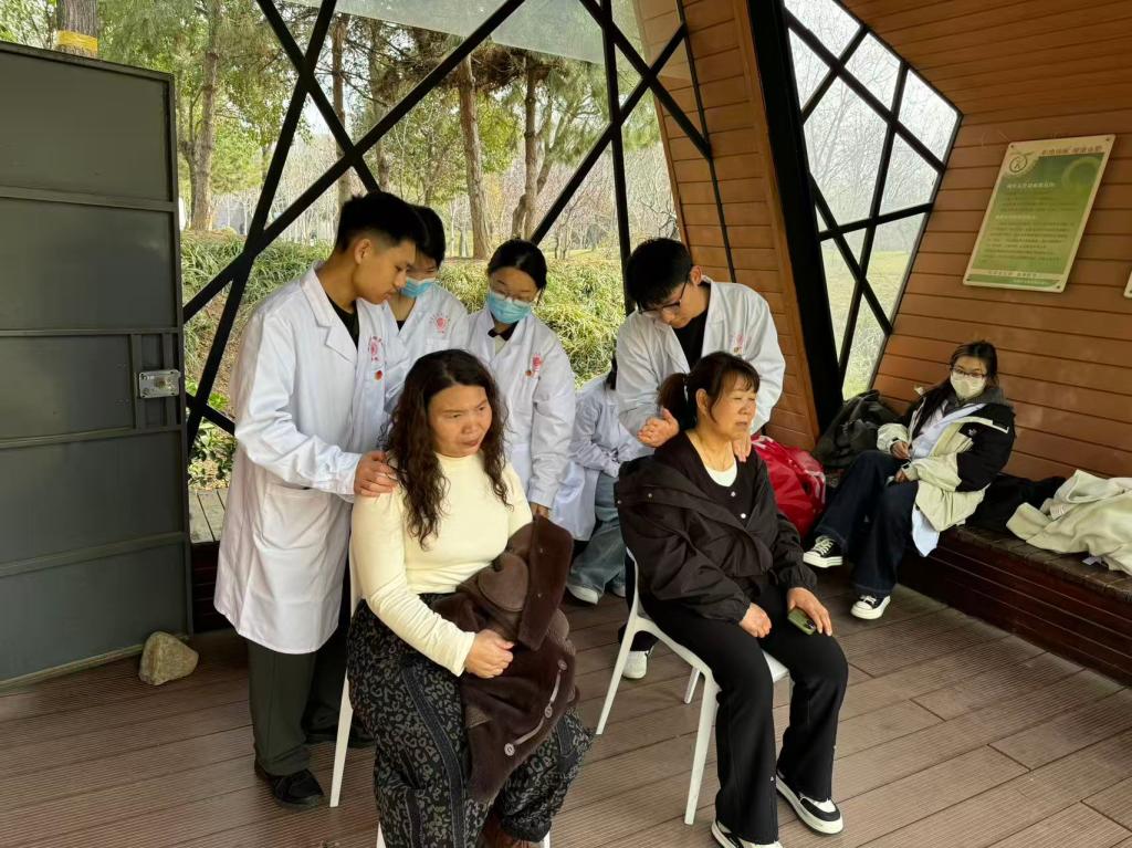 3月28日,志愿者们切换“医者身份”,先后走进鹤壁市桃园公园、体育公园健康小屋开展义诊服务。现场分工明确、专业高效,免费为群众测量血压、检测血糖、提供按摩舒缓服务,并耐心解读健康指标,科普慢性病防控与健康饮食知识。针对指标异常者,志愿者精准提供就医建议,切实满足居民日常健康监测需求,传递医者温度。