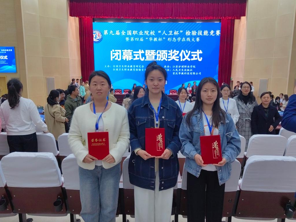 3月30日至4月1日,在江苏淮安举办的第九届全国职业院校“人卫杯”检验技能竞赛上,公司选手斯琴、赵亚琼、孙新瑶3名同学,经过激烈角逐,获得个人一等奖1项,三等奖6项,并获得团体三等奖。