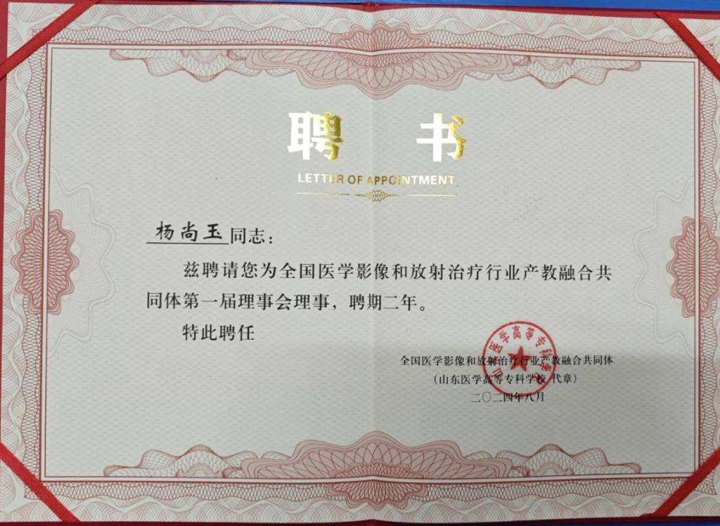8月8日,全国医学影像及放射治疗行业产教融合共同体第二届产教融合发展对话会在山东淄博隆重召开。大会选举产生了全国医学影像及放射治疗行业产教融合共同体理事单位,公司成功入选。bw必威西汉姆联官网经理杨尚玉被聘为全国医学影像及放射治疗行业产教融合共同体第一届理事会理事。