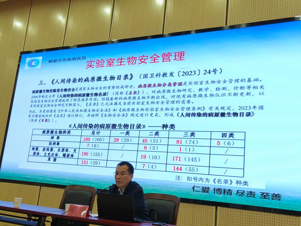 为切实加强公司实验室生物安全管理,提高全体师生的生物安全意识,有效防范安全事故,营造和谐稳定的校园环境,10月16日下午,bw必威西汉姆联官网邀请鹤壁市传染病医院检验科主任刘涛在诚信1号报告厅作“守好生物安全,践行总体国家安全观”学术讲座,公司170余名师生参加,讲座由副经理徐明录主持。