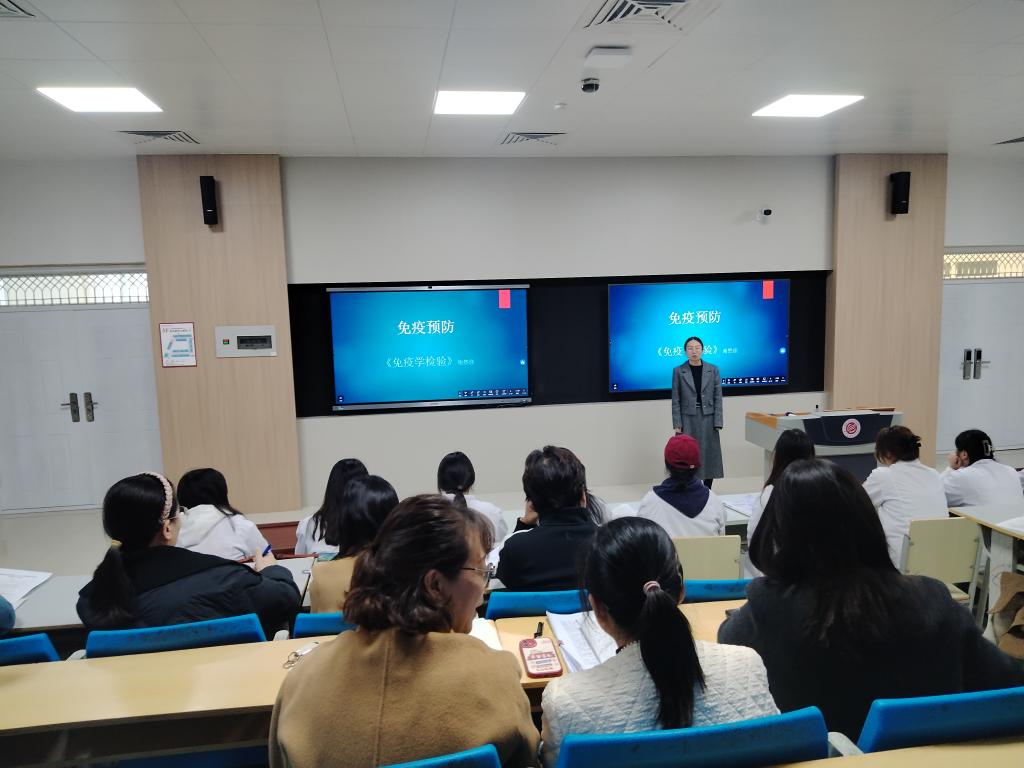汇报课上,范衡老师以“大叶性肺炎”为题,将教学实例引入课堂教学,运用图例讲述了大叶性肺炎的临床表现、病理分期、影像学表现及诊断鉴别,内容环环相扣;谢然佳老师以“免疫预防”为题,利用学习通精心讲解人工主动免疫与人工被动免疫的区别,内容充实,讲解生动;张华平老师以“细胞膜跨膜物质转运”为题,通过动画及视频详细讲解了物质转运的方式、单纯扩散、易化扩散和主动运输的概念及类型,教学深入浅出;刘帅老师以“中药丸剂制备”为题,讲解丸剂的制备工艺流程及注意事项,教学环节完整,以希沃游戏检验员工学习的成果,激发员工的学习兴趣。4名教师汇报课准备充分、特色鲜明,教学设计和教学实施完整,展示了青年教师风采。