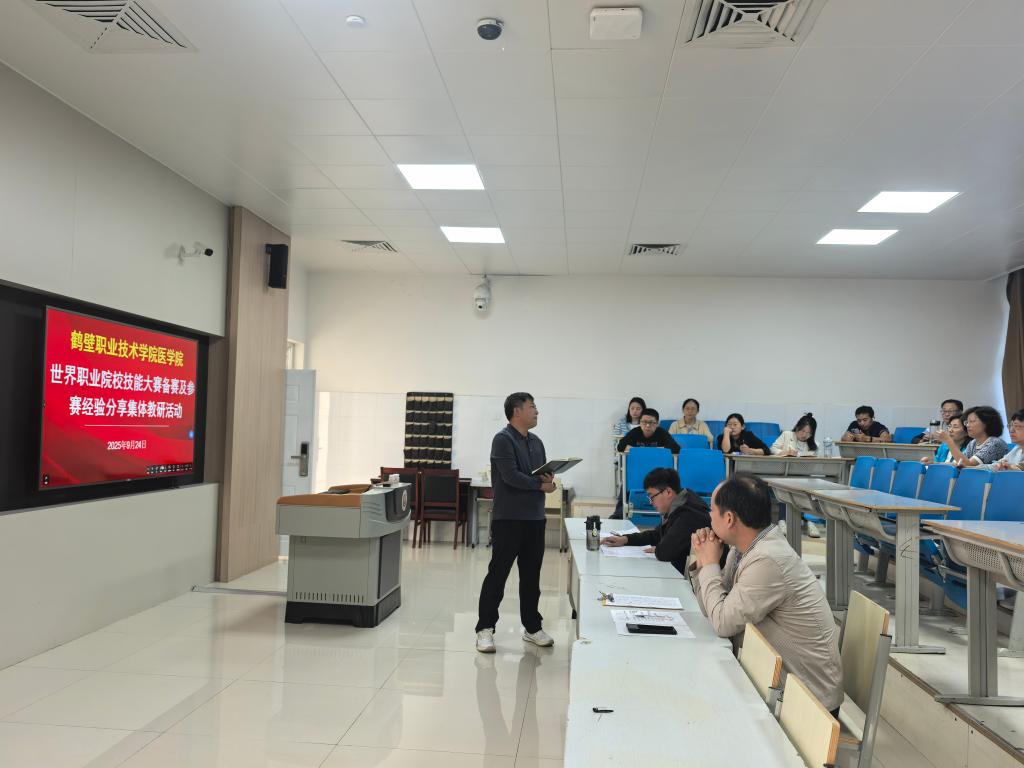 9月24日下午,bw必威西汉姆联官网在诚信教学楼D315举行世界职业院校技能大赛“医药生产与经营”赛道银奖经验分享集体教研活动。全体任课教师参加。