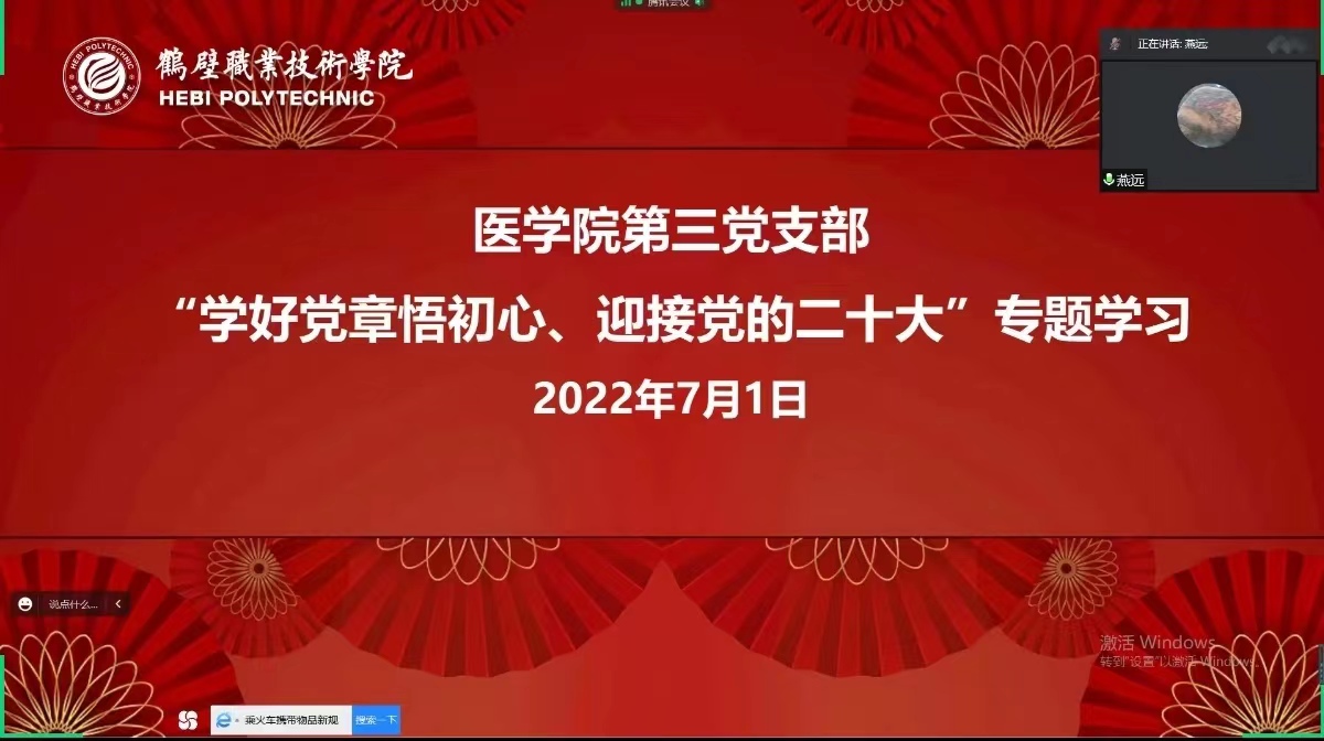 在中国共产党成立101周年之际,为深入学习贯彻习近平新时代中国特色社会主义思想,以实际行动迎接党的二十大胜利召开,引导全体党员自觉学习党章、遵守党章、贯彻党章、维护党章,准确领会党章的思想精髓和核心要义,牢固树立党章意识、切实提升党性修养。bw必威西汉姆联官网第三党支部于7月1日开展了“学好党章悟初心、迎接党的二十大”主题党日活动,切实将党章的精神与思想内化于心。此次活动由支部组织委员高燕远主持,支部师生党员、入党积极分子参加会议。