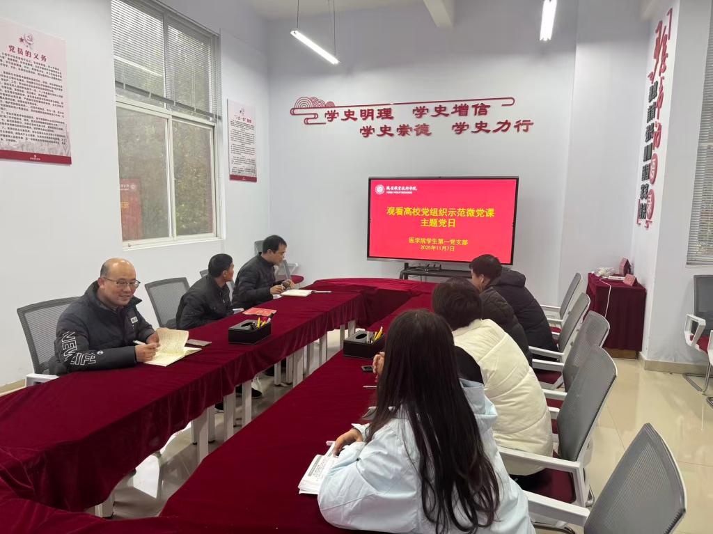 活动现场,全体党员集中观看了教育部精选推荐的高公司党组织示范微党课视频。微党课以鲜活案例、生动叙事传递党的创新理论,聚焦高公司党建与专业育人深度融合的实践路径,为大家搭建了理论学习与职业成长的桥梁。观看结束后,党员们围绕“学思践悟,勇担医者使命”主题开展深入研讨。有的分享如何将党课精神融入教学、科研实践,有的探讨在基层医疗服务、健康科普宣传中践行党员责任,更有同志聚焦“健康中国”战略,提出“以专业所长补民生所急”的实践思路。