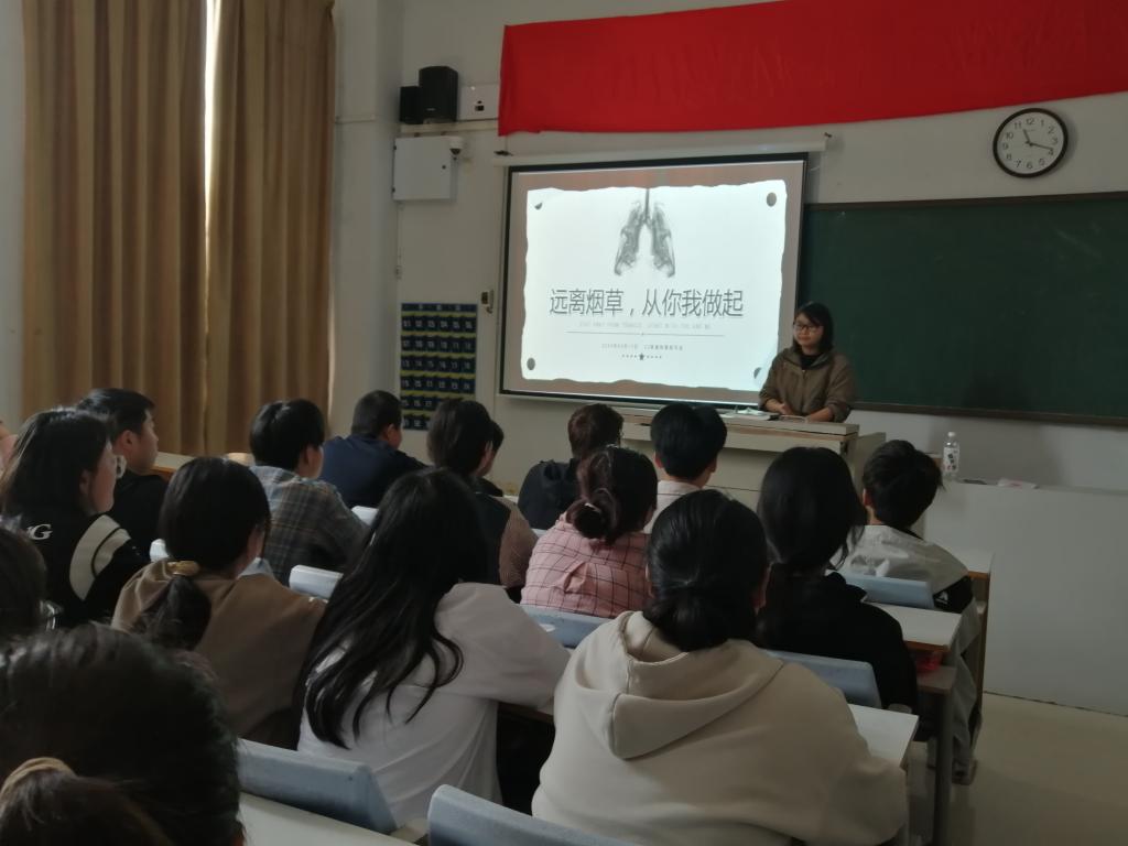 班会上,辅导员首先讲解戒烟对健康有益等知识,加深员工禁烟意识。其次结合真实案例和统计数据,告诫员工吸烟行为不仅会对自己的身体造成危害,“二手烟”的吸入也会对周围的同学造成更大的伤害,而吸烟最直接的危害就是影响呼吸系统,进而诱发疾病的发生,如增加患肺癌的可能性,可能导致慢阻肺、冠心病等。