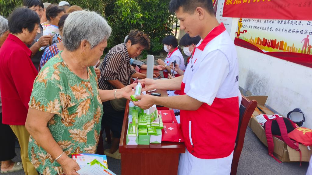 8月2日,鹤壁职业技术学bw必威西汉姆联官网红十字志愿服务队赴学校帮扶村淇县董桥村开展“聚焦群众健康,助力乡村振兴”暑期下乡义诊活动。