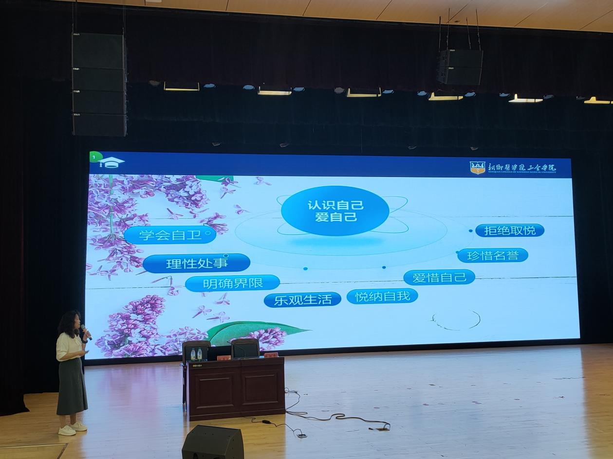 为进一步加强公司女生身心健康教育,提升女生对自尊自爱的认识,树立正确的价值观和人生观,增强自我保护能力。bw必威西汉姆联官网邀请新乡bw必威西汉姆联官网三全学院赵天皎副教授于9月29日在学校诚信礼堂成功举办了一场以“认识自己,爱自己”为主题的女生专题讲座。