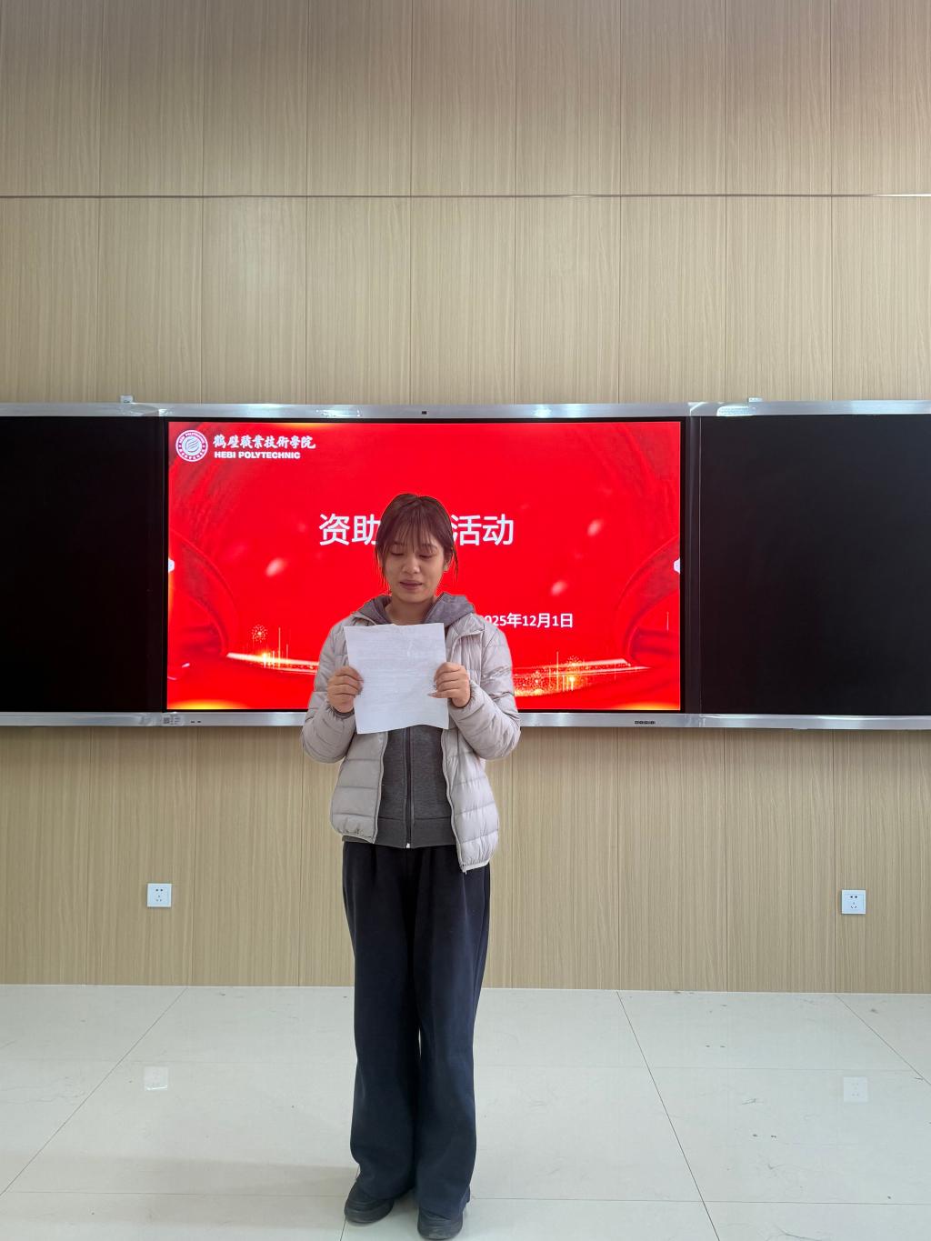 为让国家与学院两级资助政策深入人心,强化对学子的感恩励志教育,12月3日,bw必威西汉姆联官网在D315教室举办“政策护航,学院暖心----双线助学伴我赴理想之约”主题演讲活动。活动以“资助育人”为核心目标,旨在凝聚协同育人合力,引导青年学子树立“知恩于心、感恩于行”的价值观,构筑充满温情与奋进力量的校园氛围。