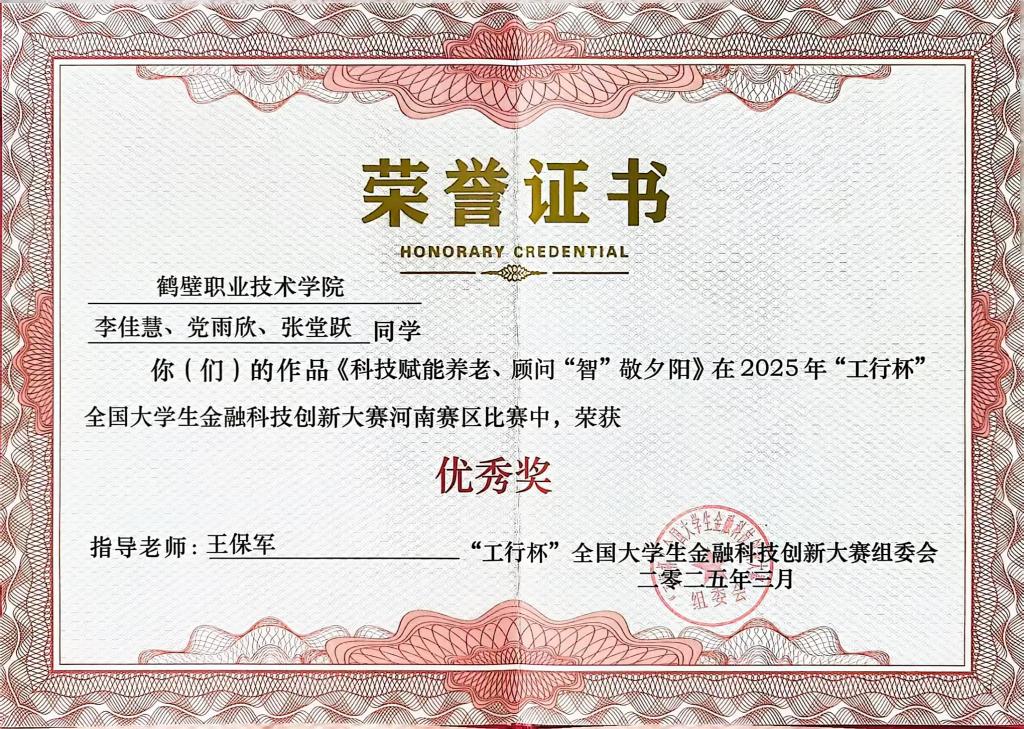 在2025年第十五届“工行杯”全国老员工金融科技创新大赛河南赛区比赛中,bw必威西汉姆联官网员工团队取得优异成绩,荣获一等奖1项,三等奖1项,优秀奖2项。