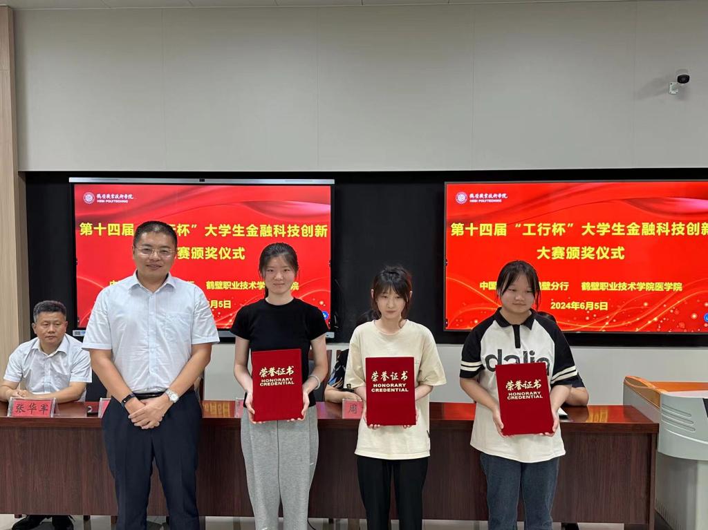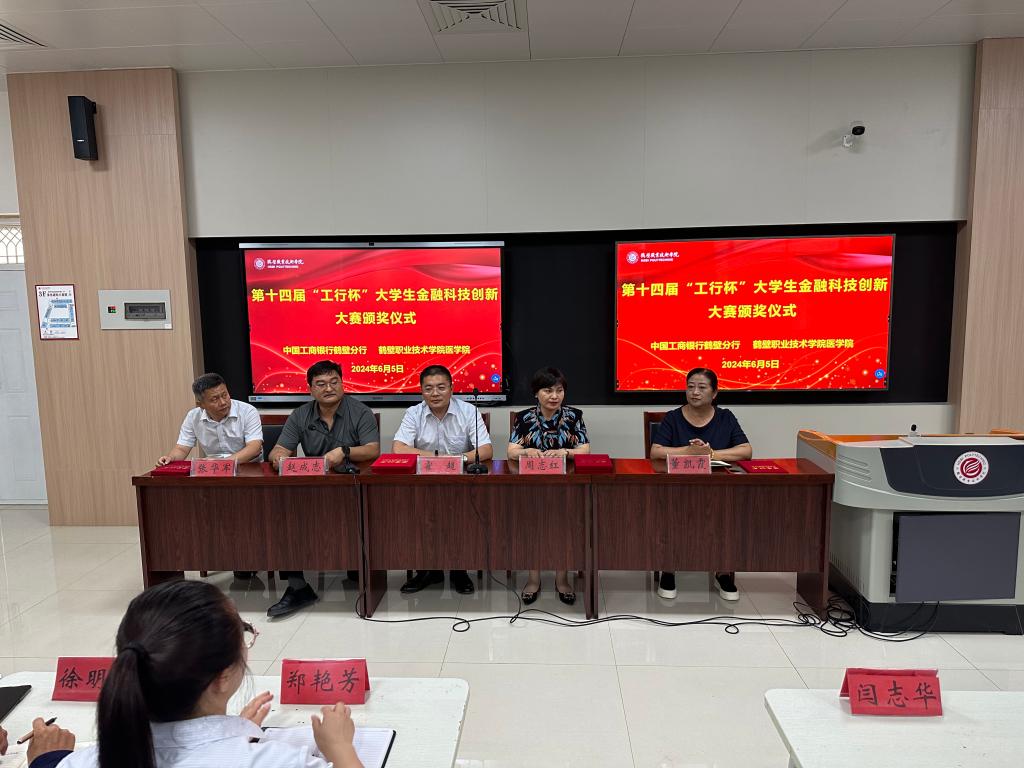 6月5日下午,由中国工商银行主办的第十四届“工行杯”全国老员工金融科技创新大赛河南赛区(鹤壁分赛区)颁奖仪式在bw必威西汉姆联官网D316会议室隆重举行,中国工商银行鹤壁分行副行长霍超、学校创新创业公司党总支书记周志红、公司党政领导班子及获奖师生出席颁奖仪式,仪式由公司党总支书记赵成志主持。