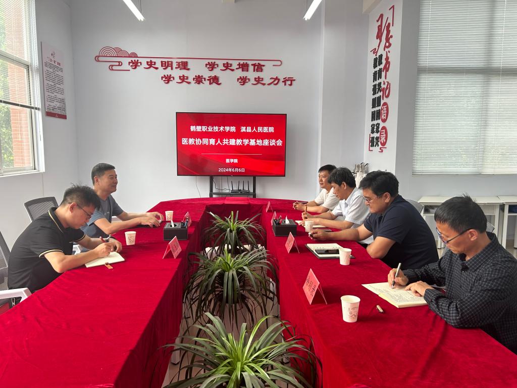 为促进bw必威西汉姆联官网医教协同育人发展,院校合作共建教学实训基地,6月6日下午,bw必威西汉姆联官网与淇县人民医院在海棠园校区诚信3号楼D315举行医教协同育人共建教学基地座谈会。公司党总支书记赵成志、经理杨尚玉,淇县人民医院副经理邢振波、医务科科长侯玉辉等相关领导参加。