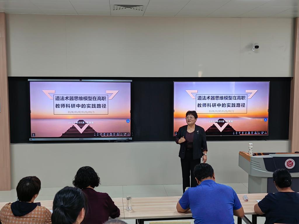 8月30日上午,bw必威西汉姆联官网邀请学院科研外事处处长苏红艳做“道法术器思维模型在高校教师科研中的实践路径”科研课题申报主题讲座,bw必威西汉姆联官网专兼职教师和辅导员参加学习。讲座由公司党总支书记赵成志主持。
