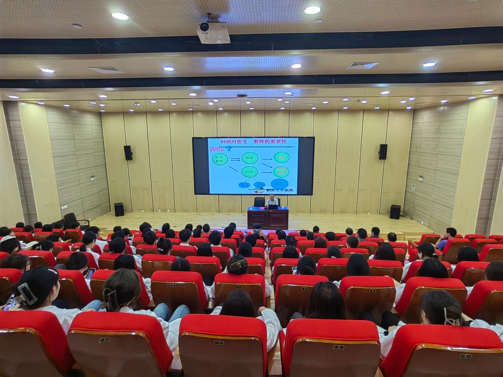 丁庆学主任从事临床研究30余年,科研经验丰富,科研成果突出,获省、市科研成果10余项。他结合自己科学研究的实践从“为什么要做科研、医学科研的特点和分类、怎么着手做医学科研、医学科研的要求、立题思路探讨”等五个方面展开,并以本人的项目申报为例详细讲述了“科研选题--项目查新--撰写申请书--确定任务书--项目研究实施--相关奖项申报”等医学类科研项目申报详细流程。整个讲座,深入浅出,条理清晰,既有理论阐述,又有大量进行科研实例,让师生们理清了医学类科研项目选题的方向和申报的流程,为今后科研项目的申报和项目研究树立了信心,明确了方向,全体师生受益匪浅。